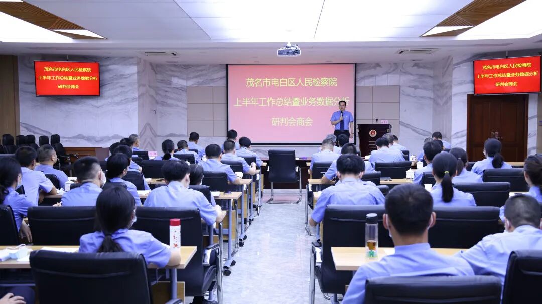 8月1日上午,茂名市电白区人民检察院召开上半年工作总结暨业务数据分析研判会商会议,总结分析上半年重点业务数据及检察工作开展情况,部署推进下半年工作任务。电白区检察院党组书记、检察长容慧辉出席会议并讲话。全体检察人员参会。