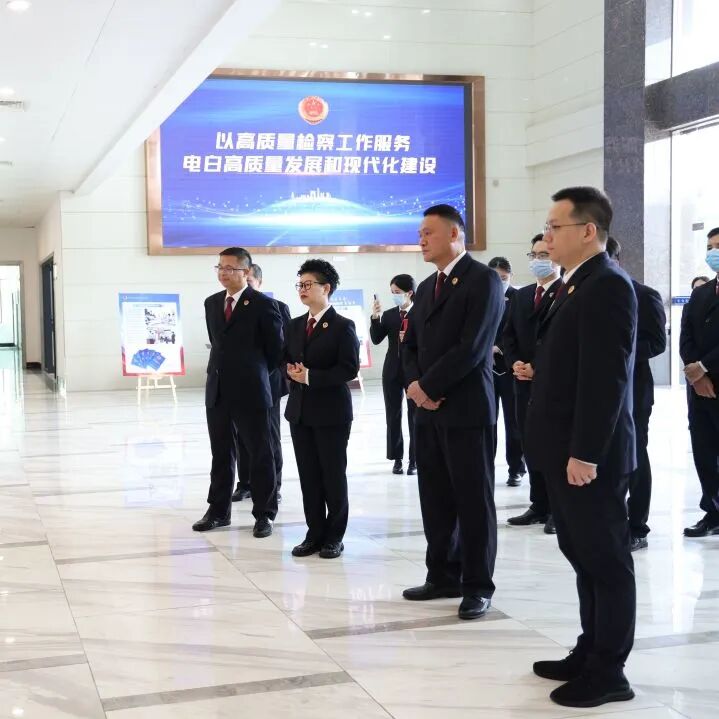 交流过程中,梁瑞斌一行还参观了电白区检察院智慧党务中心、融媒体工作室、文化长廊等区域,通过观看展板和听取讲解,详细了解该院检察文化建设及党建、新媒体等工作开展情况,并结合主题党日活动,实地参观了冼太故里爱国主义教育基地。