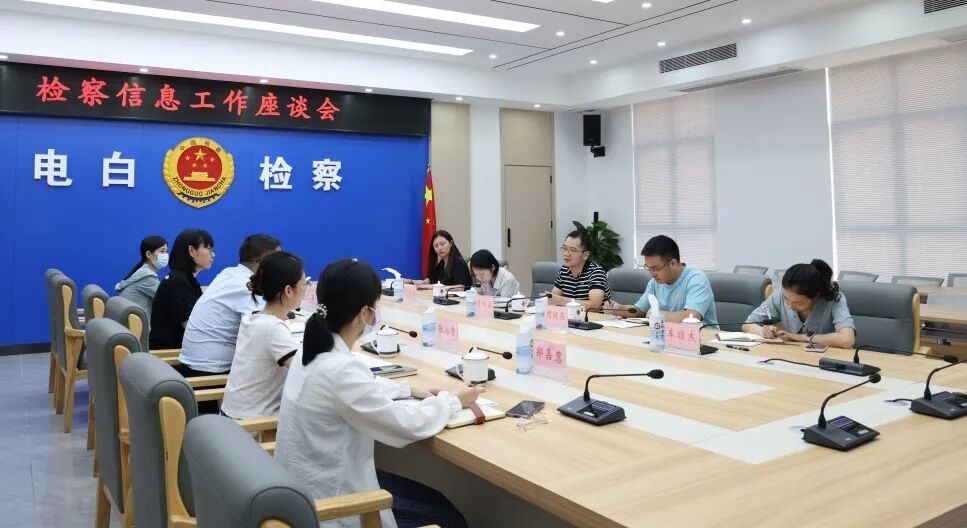 座谈会上,调研组详细听取电白区检察院信息工作开展情况。与会人员就信息工作中遇到的共性问题、创新性做法及意见建议进行了现场交流。