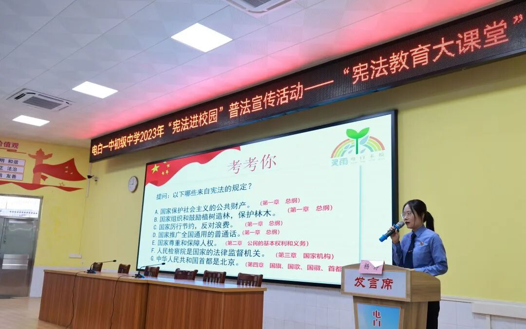 为培育青少年法治意识、国家意识和公民意识,12月4日至8日,电白区检察院开展了“宪法进校园”系列活动,各位法治副校长纷纷走进校园,为师生们带来了一堂堂生动有趣的法治课。
