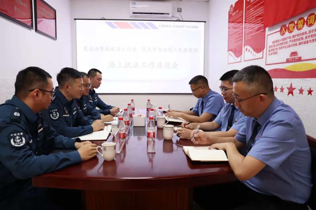 “要严打涉渔“三无”船舶、伏休偷捕等违法违规行为,确保所辖渔船‘应休尽休’,协力推进海上执法司法工作高质量发展。”普法活动结束后,电白区人民检察院党组成员、副检察长杨文春率队与茂名海警局滨海工作站召开海上执法工作座谈会,检警双方就休渔期专题普法、非法捕捞专项治理、“三无”船舶整治、海上养殖综合整治等问题进行研讨,共商海洋保护之计,凝聚海洋保护共识。