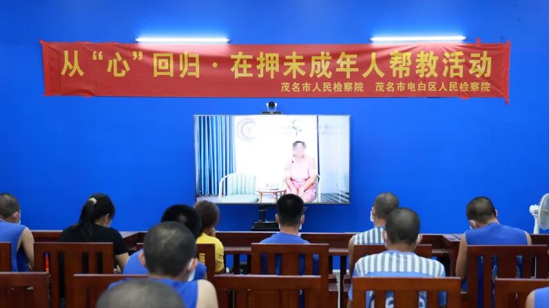 为贯彻落实最高检关于加快推进未成年检察业务统一集中办理的工作要求,进一步做好在押未成年人的帮教工作,不断强化教育、感化、挽救效果,7月4日上午,茂名市检察院、电白区检察院联合到茂名市第一看守所开展“从心回归”主题教育帮扶活动,为20余名在押未成年人上了一堂别开生面的“普法教育+亲情感化”课程。
