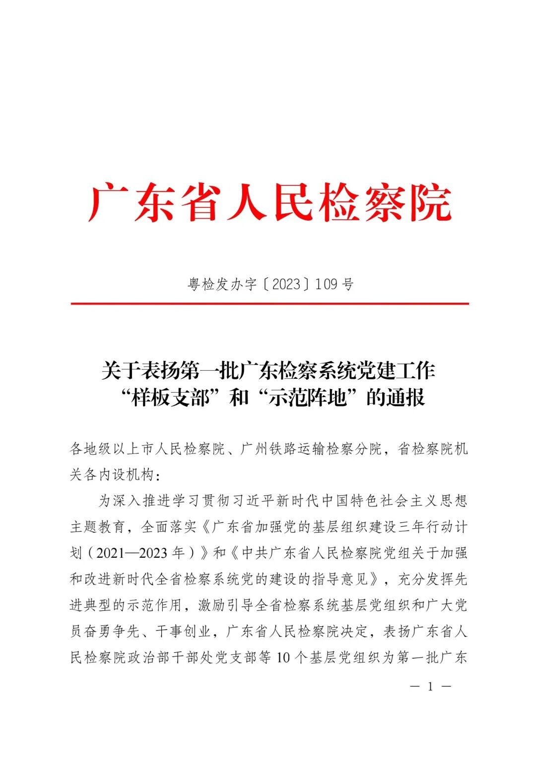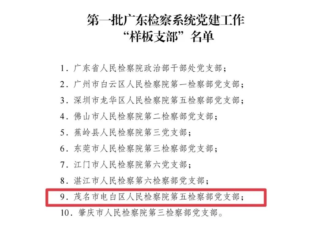 近日,广东省人民检察院通报了第一批广东检察系统党建工作“样板支部”和“示范阵地”,电白区检察院第五检察部党支部入选“样板支部”。