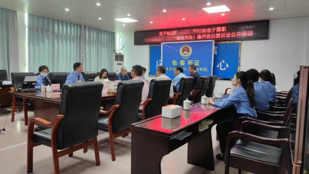 10月17日上午,电白区检察院采取“现场查验+上门听证”的方式,就该案召开行政公益诉讼检察公开听证会,邀请人民监督员、区生态环保局代表、当地村民代表、涉案养殖场代表参加会议,吴川市检察院公益诉讼检察部门干警列席旁听。
