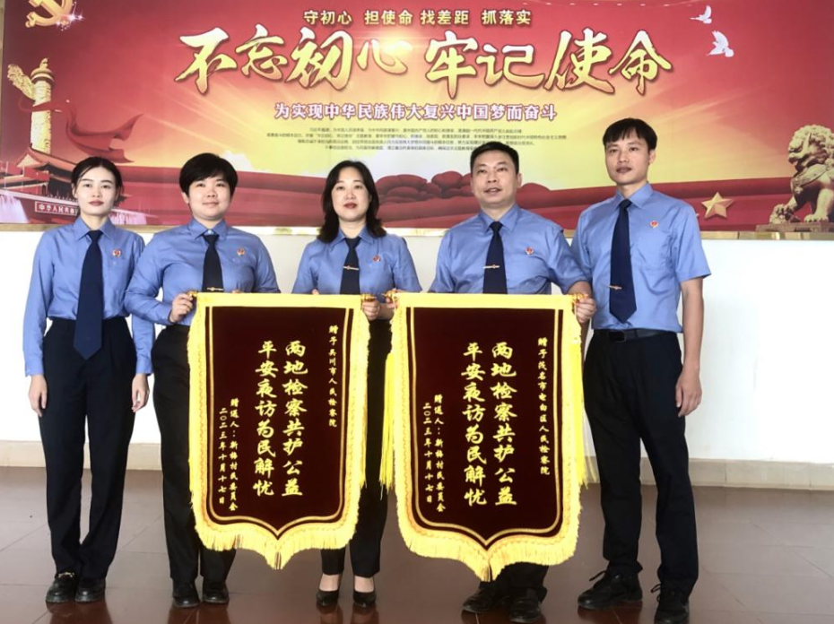 “我们村被这个养殖场排污问题困扰了很长时间,本来是抱着试一试的态度向检察机关反映这个情况,没想到检察机关这么重视,整改这么迅速。前些天就有人和我说已经没有污水排到我们农田了,我上午去现场看了看,发现养殖场整改得很到位,真的非常感谢你们检察机关。”当地村民代表边感慨边将锦旗分别送到茂名电白、湛江吴川两地检察院检察官手中。