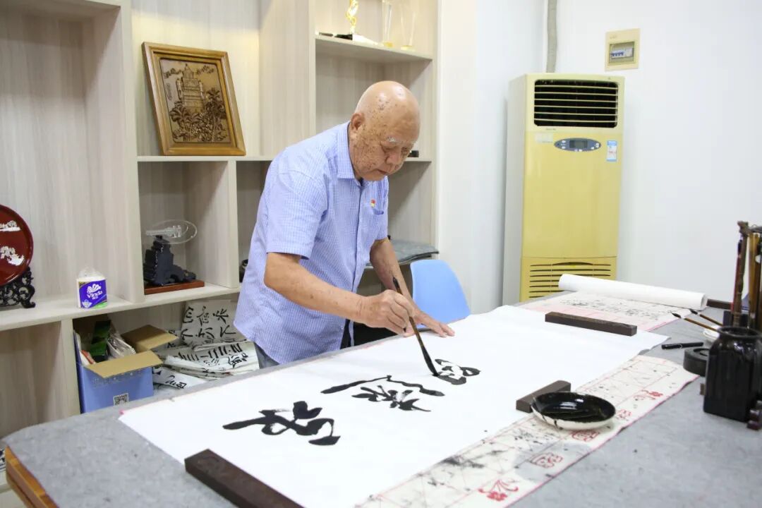 退休党员干部杨德尧与青年干警交流书法心得,并结合自身的奋斗历程和履职感悟,现场创作书法作品——“永远跟党走”,勉励青年干警坚守初心使命,在新征程中绽放青春光彩。