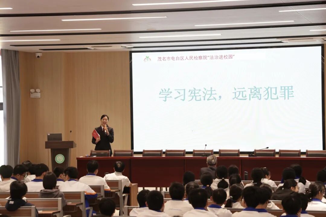 12月4日,电白区检察院组织干警走进茂名华育高级中学、电白第四中学、电白高级中学、陈村街道中心小学等开展“宪法进校园”活动。检察干警针对未成年人身心特点,采取典型案例讲解、播放法治视频、开展宪法知识问答等形式,向同学们介绍了宪法中与未成年人密切相关的内容,引导同学们认识宪法、了解宪法,做好宪法的忠实崇尚者、自觉遵守者、坚定捍卫者。
